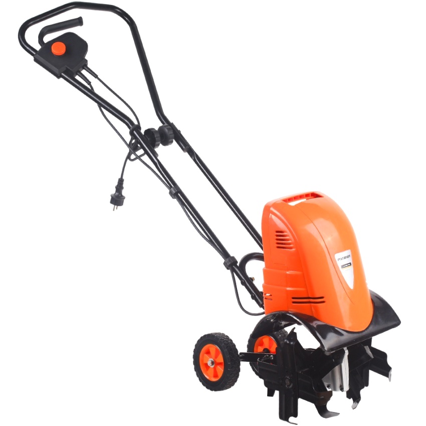 Ang tatak na ito ng produksyon ng Russia ay itinatag ang sarili sa loob ng mahabang panahon at sa pinakamahusay na paraan. Sa loob ng sampung taong kasaysayan ng produksyon, napansin ng mga mamimili ang pangunahing mga katangian para sa kanilang sarili, at ang ilan ay wastong isinasaalang-alang ang mga produkto ng tatak na ito na ang pinakamahusay na mga tagapagtanim ng elektrisidad. Ang pagkonsumo ng kuryente ng yunit ay 1.1 kW, ang bigat ay 45 kg, ang lalim ng pag-aararo ay 25 cm, at ang lapad ay 35-65 cm. Nilagyan ito ng isang 50 m cable, na makabuluhang nakikilala ito mula sa iba pang mga modelo.