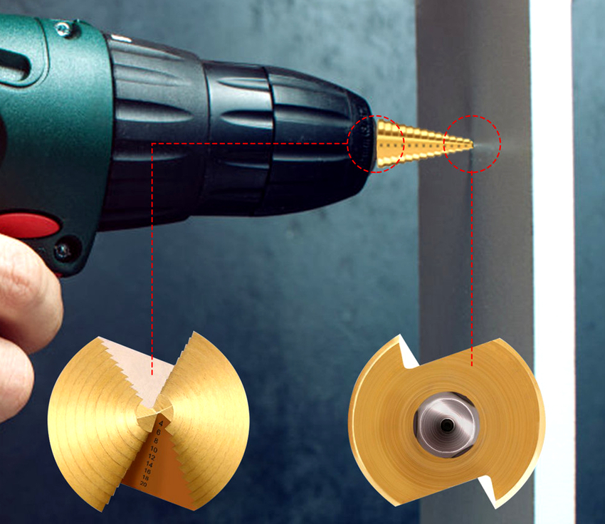 Ang matalim na dulo ng metal cone drill ay nagbibigay-daan para sa madaling pag-tap sa anumang materyal na density