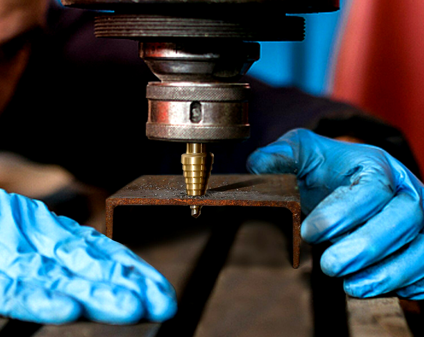 Sa susunod na hakbang, ang pagputol ng attachment ay inilalapat sa ibabaw ng workpiece at ginanap ang pagbabarena. Mahalagang tandaan na ang produkto ay dapat na matatagpuan sa isang mahigpit na patayo na posisyon na may paggalang sa workpiece.Sa panahon ng proseso ng pagbabarena, ang anggulong ito ay dapat na mahigpitang sinusunod. Ang mga drill ng metal, na may hugis na korteng kono, ay ginagamit upang maisagawa ang iba't ibang mga diameter at independiyenteng mga tool.