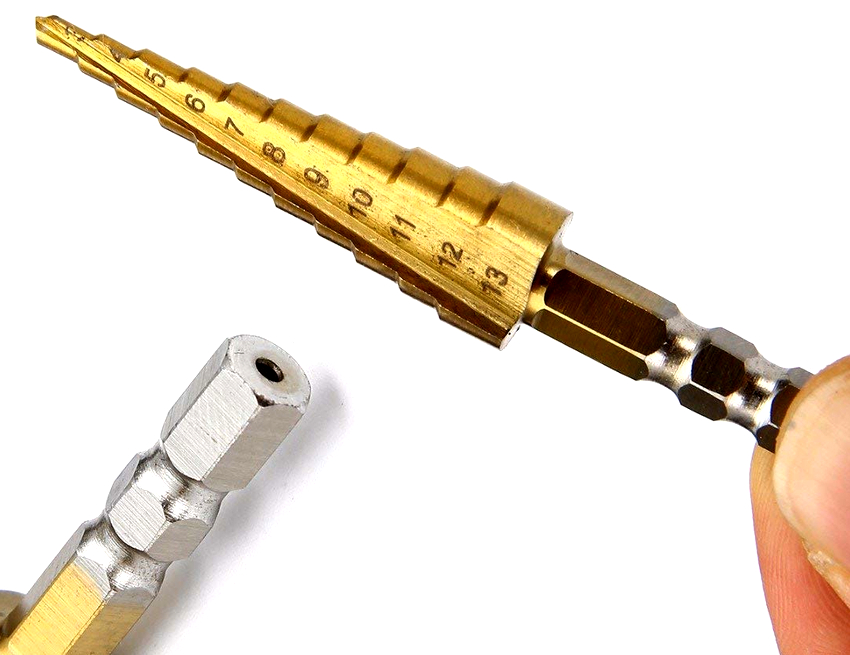 Nakatutulong na impormasyon! Dahil sa malinaw na gradation ng mga antas, ang bawat isa ay may sariling diameter, ang mga step cone drills ay mas maginhawa at inirerekomenda para sa mga taong walang karanasan sa mga naturang tool. Ang bawat hakbang sa naturang produkto ay may markang digital, na nagbibigay-daan sa iyo upang mabilis na matukoy ang kinakailangang diameter.