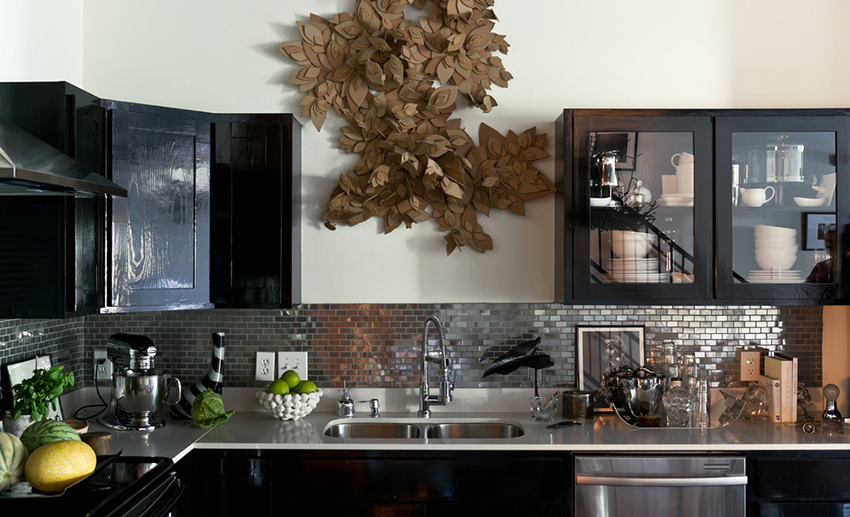 Kung ang kusina ay natapos na may mga tile ng salamin, ito ay magmukhang naka-istilo at hindi karaniwan.