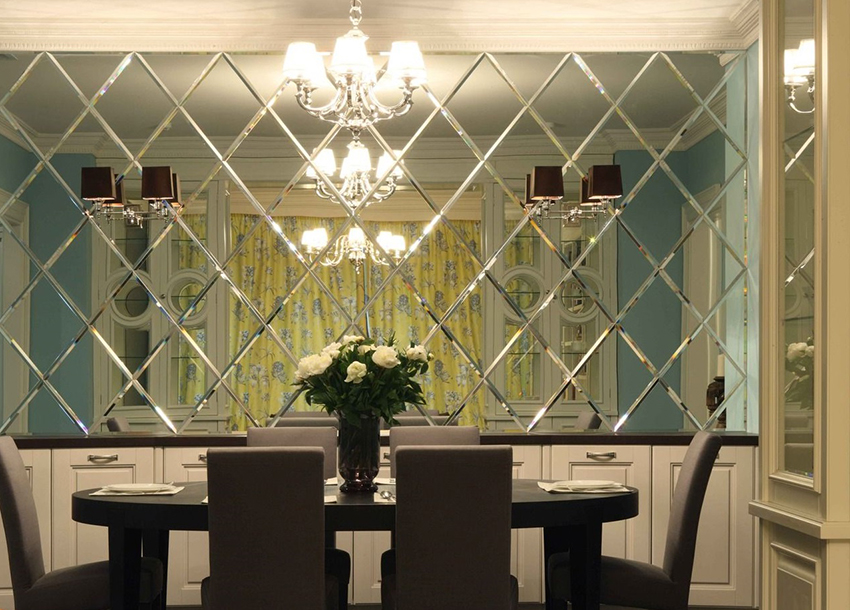Ang beveled mirror tile ay isang maraming nalalaman pagtatapos ng materyal na maaaring magamit sa palamuti ng anumang silid. Salamat sa taglay nitong pagmamalabis, biyaya, kagandahan at katapangan, umaangkop ito nang maayos sa anumang istilo ng panloob na disenyo.