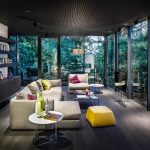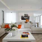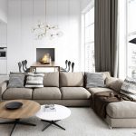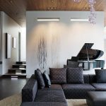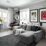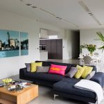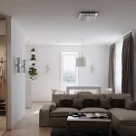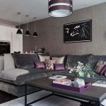 Bilang karagdagan, ang kamangha-manghang mga larawan ng mga sofa ng sulok sa mga bulwagan ay malinaw na nagpapakita kung paano nagkakasundo ang gayong mga disenyo ay pinagsama sa mga bukas na plano sa sahig. Ibinigay na ang scheme ng kulay ay napili nang tama, ang mga modular na kasangkapan ay maaaring maging isang pangunahing elemento ng interior. Kadalasan ginagamit ito upang lumikha ng isang kapaligiran sa estilo ng modernong minimalism, pang-industriya at uso sa Scandinavian at eco-style. Ang lahat ng mga pagpipilian sa disenyo na ito ay nailalarawan sa pamamagitan ng laconicism at contrasts, na nakamit dahil sa iba't ibang pagkakayari ng mga materyales.