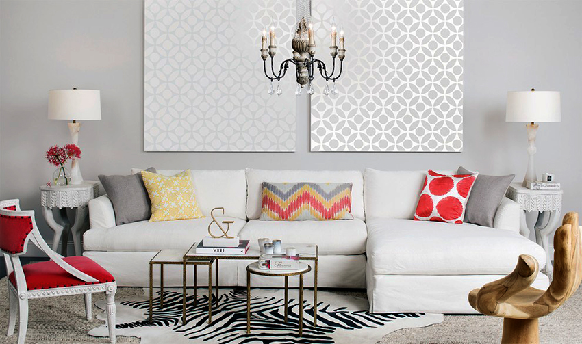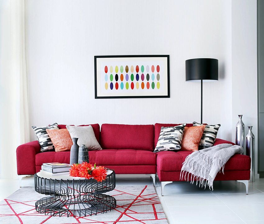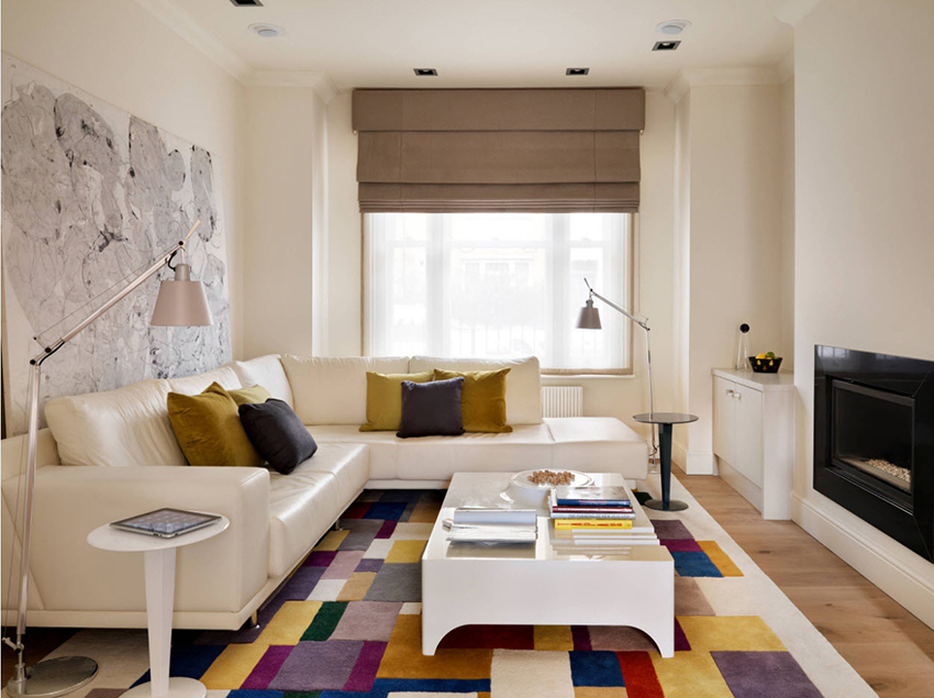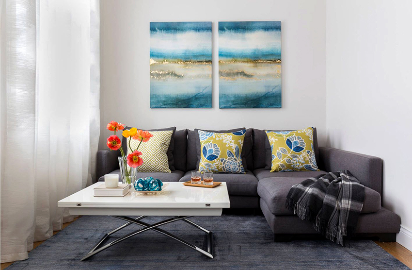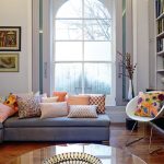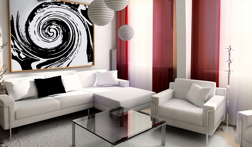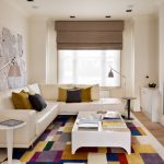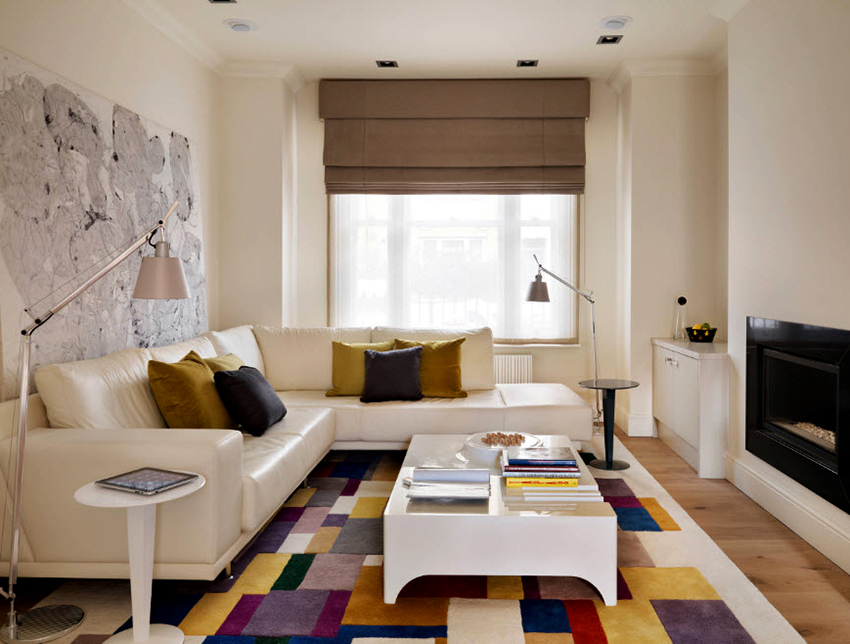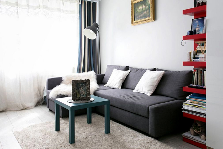Kapaki-pakinabang na payo! Kung ang sofa ay may isang napaka-maliwanag na kulay, tiyak na kailangan mong magdagdag ng mga accent sa interior na susuporta sa disenyo nito, halimbawa, isang shade shade sa isang lampara, isang karpet, isang vase.