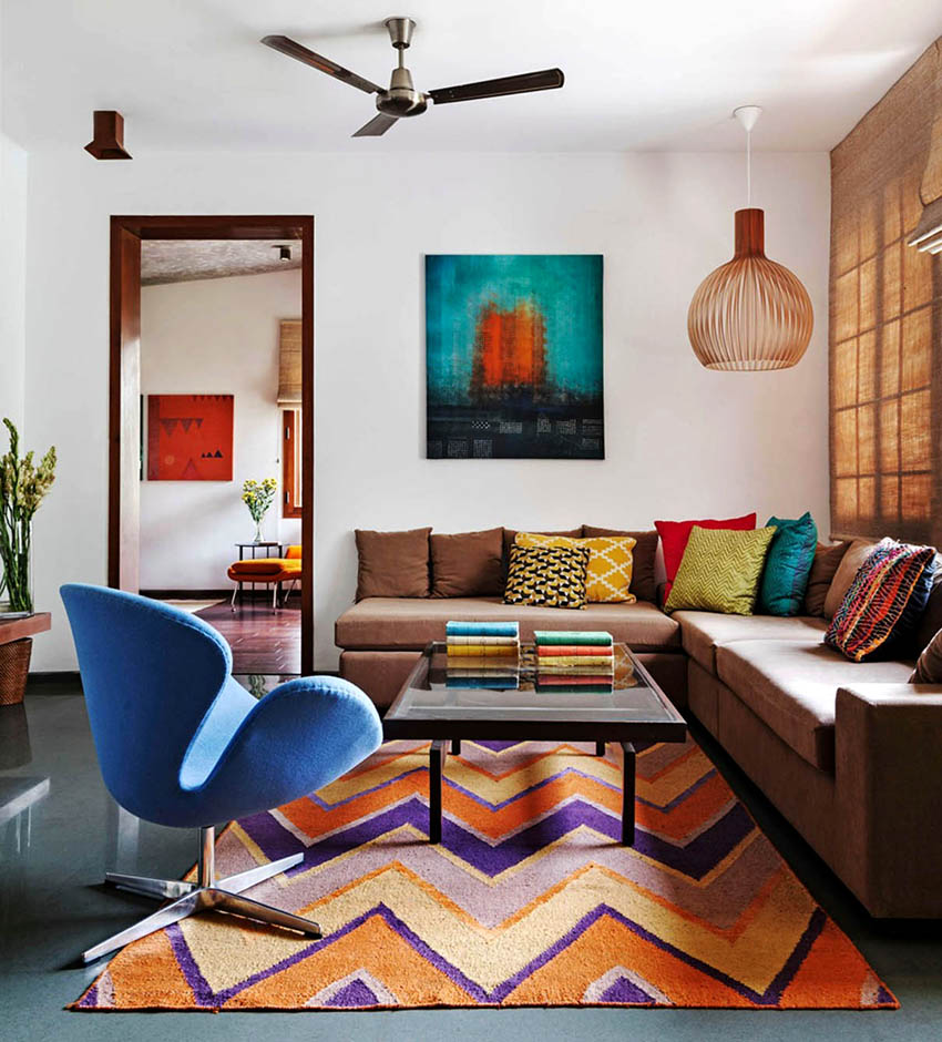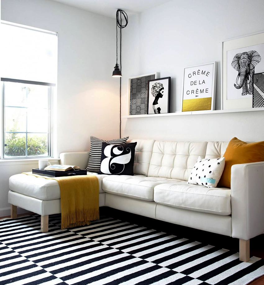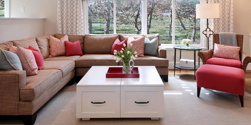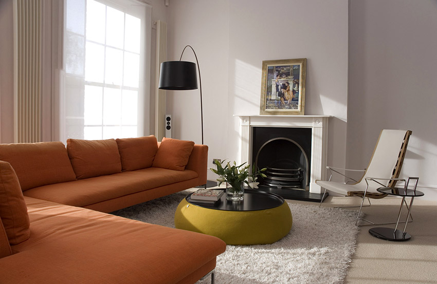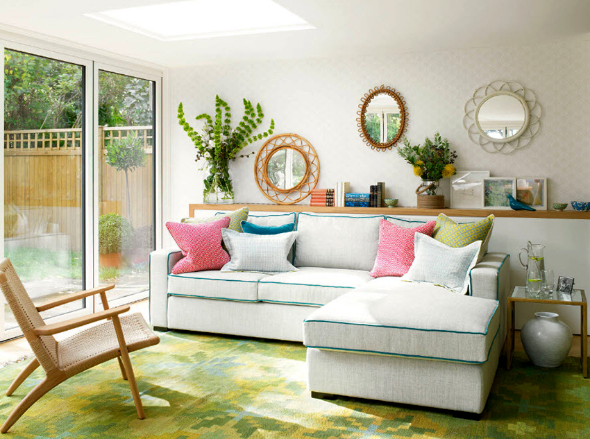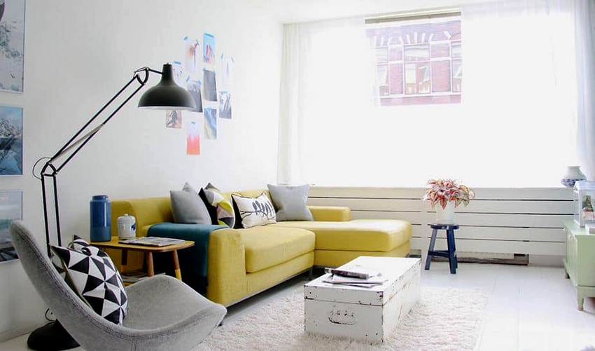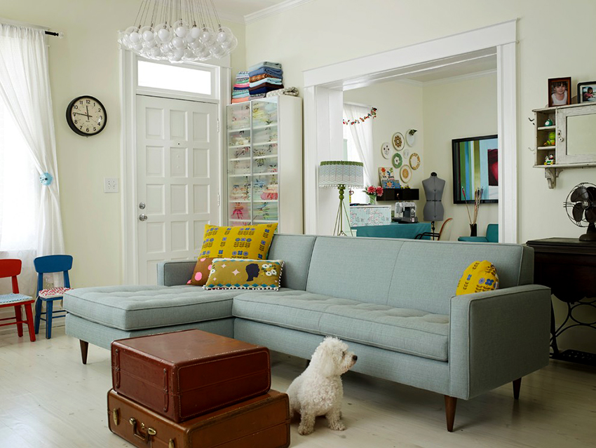 Kapaki-pakinabang na payo! Kung ang sofa ay may isang napaka-maliwanag na kulay, tiyak na kailangan mong magdagdag ng mga accent sa interior na susuporta sa disenyo nito, halimbawa, isang shade shade sa isang lampara, isang karpet, isang vase.
