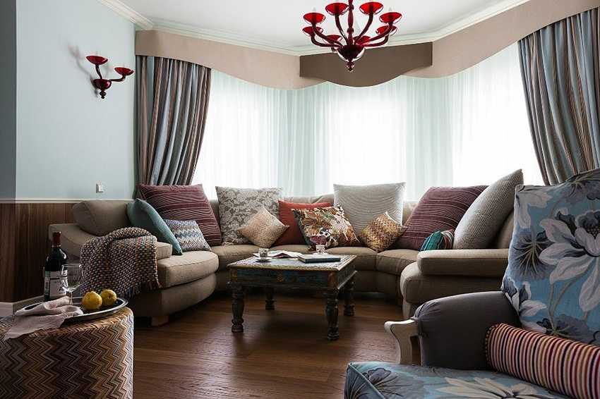 Kapaki-pakinabang na payo! Ang mga istrukturang kalahating bilog ay maaaring mabisang ginamit upang maibigay ang mga hindi pamantayang silid. Ang mga ito ay angkop para sa pag-aayos ng isang lugar ng libangan sa isang silid na may bay window.