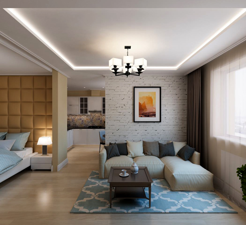 - mga konstruksyon na may built-in na sistema ng pag-iilaw;