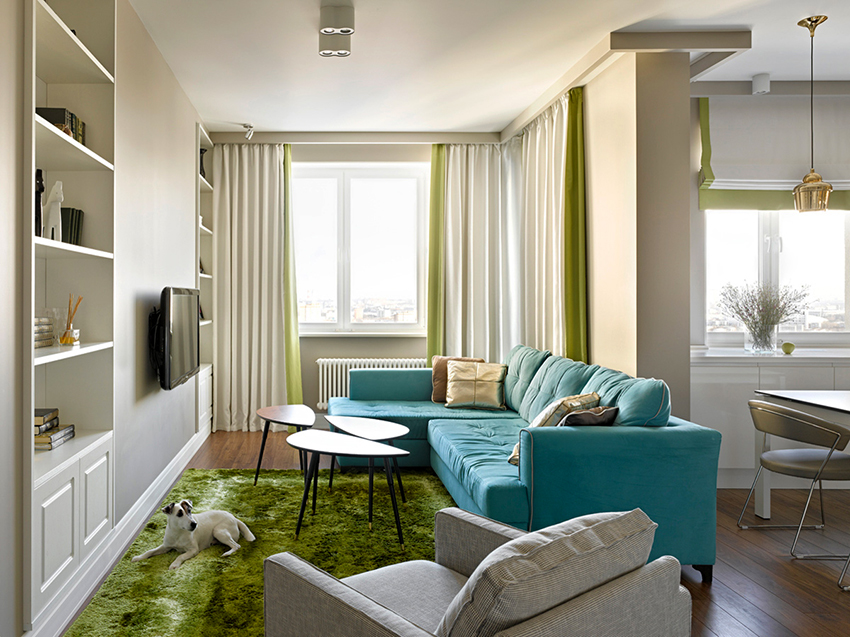 - 7 Ang mga interior na may sulok na sofa sa sala, silid-tulugan at kusina
