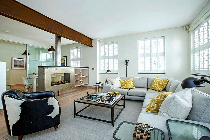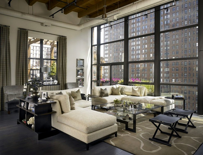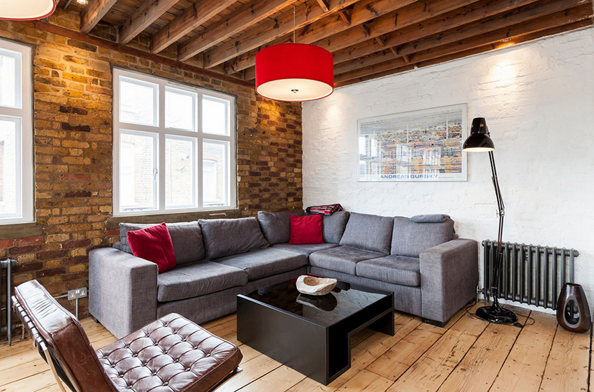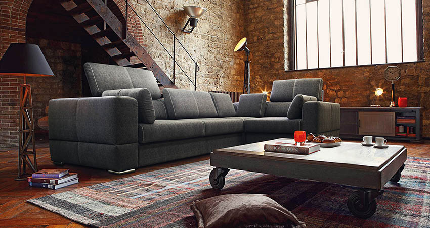 Ang disenyo ng mga kuwartong may istilong loft ay karaniwang naglalaman ng dekorasyon at mga detalye ng isang pang-industriya na direksyon, halimbawa, mga tubo, brickwork, dingding na gumagaya sa kongkreto, atbp. Ang layout ng mga nasabing silid ay ipinapalagay ang kawalan ng mga pagkahati, kaya madalas mong makita ang isang sulok ng sofa sa loft - ginagamit ang mga kasangkapan sa kasong ito para sa zoning space.