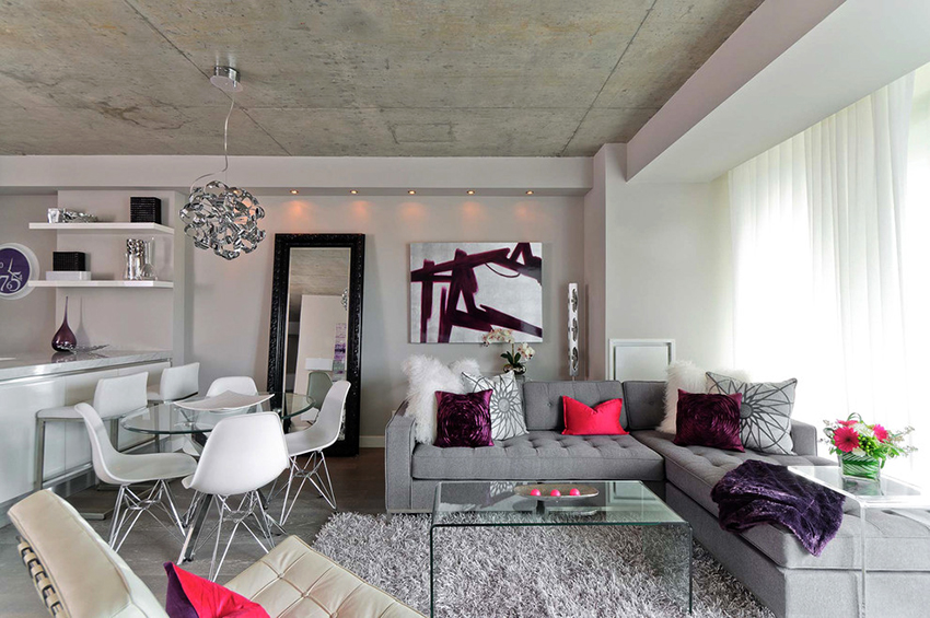 Ang mga cushion ay pandekorasyon ding elemento ng disenyo ng mga modernong sofas.Ang may kakayahang paghawak ng mga hugis, texture at kulay ay magpapahintulot sa iyo na kontrolin ang kalagayan ng silid. Matagumpay na mga pagpipilian sa disenyo: