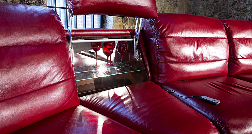 - mga sofa ng sulok na may isang bar sa sulok (ang bar ay maaaring magkaroon ng isang roll-out o nakakataas na istraktura);