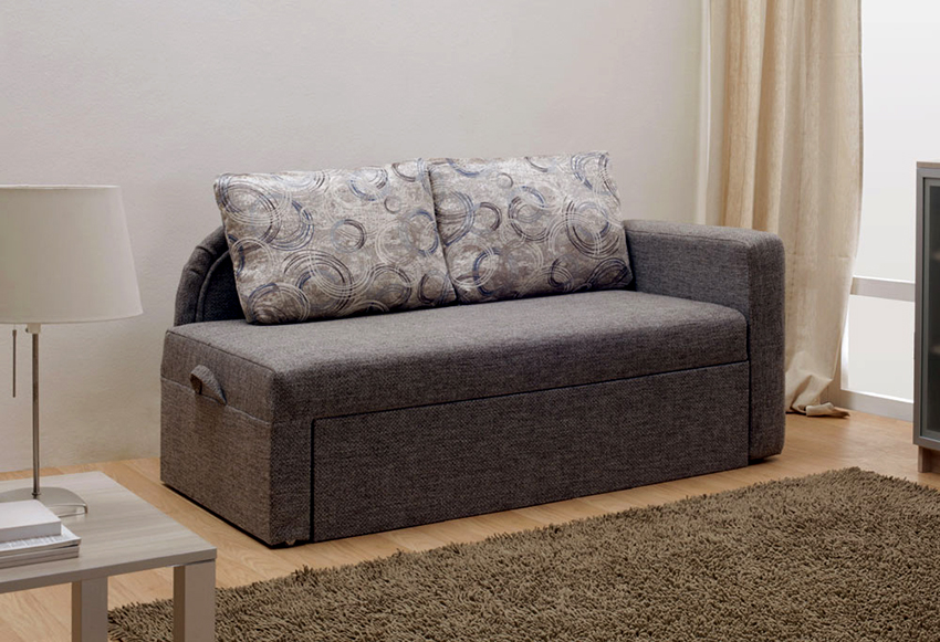 - Pinapayagan ka ng mekanismo ng pagbabago na i-install ang sofa malapit sa dingding.