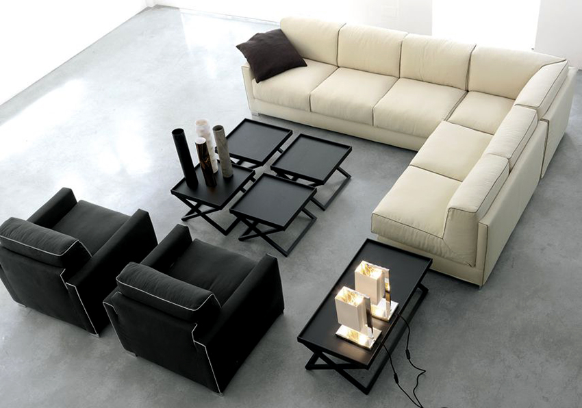 - mga sulok ng sofa na may isang mesa sa sulok (at maaaring maraming mga talahanayan);