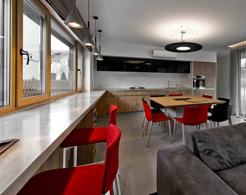 Ang mga produktong artipisyal na bato ay perpektong makadagdag sa anumang disenyo. Totoo ito lalo na para sa klasikong istilo, na kung saan ay nailalarawan sa pamamagitan ng natural na mga kulay at pagkakayari. Ang isang bato na window sill na may imitasyon ng marmol o granite ay eksaktong kailangan mo. Ang artipisyal na bato ay magiging maganda rin sa mga silid na pinalamutian ng mga modernong istilo: minimalism, moderno o art deco.