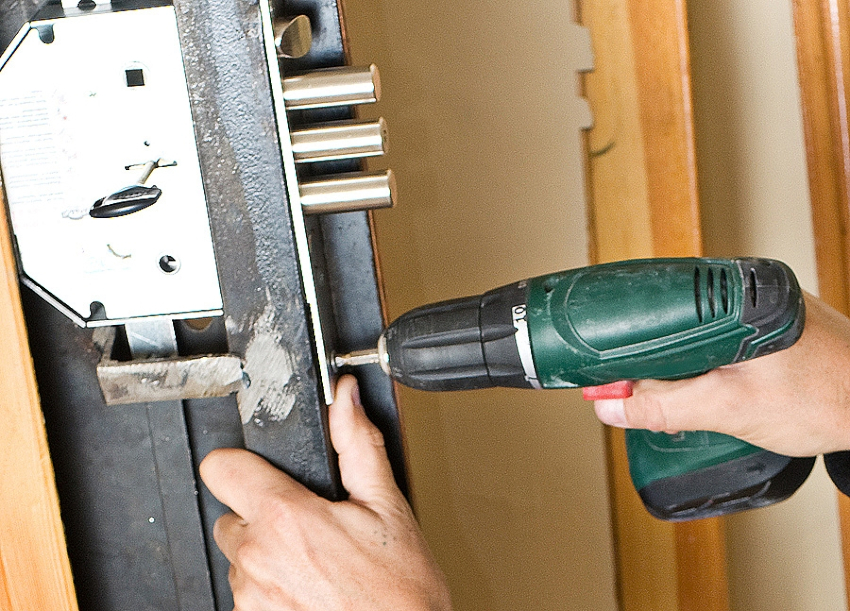 Upang ayusin ang lock ay ginagamit: pamutol ng paggiling, martilyo, pait, distornilyador, drill, distornilyador, panukalang tape
