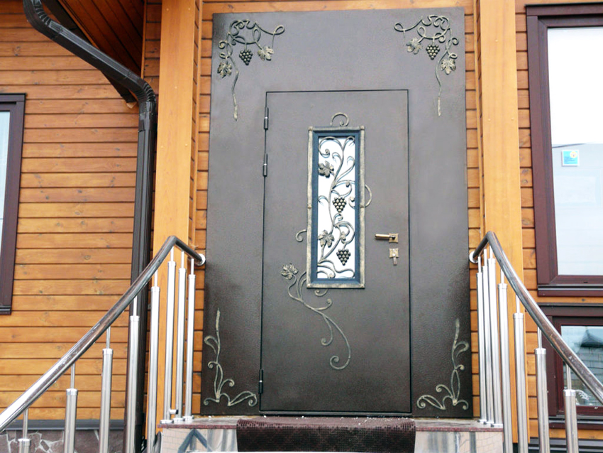 Anti-vandal. Ang materyal na ito ay ginawa mula sa isang base ng kahoy na hibla, na kasunod na natatakpan ng isang layer ng plastik. Ang mga nasabing panel ay lubos na lumalaban sa pinsala sa makina (kaya ang pangalan). At ang mga anti-vandal na MDF sheet ay lumalaban din sa temperatura. Inirerekumenda ng mga dalubhasa ang paggamit ng ganitong uri ng fiberboard para sa panlabas na dekorasyon ng mga istraktura ng pintuan ng pasukan na may direktang pag-access sa kalye. Sa mga minus, mahalagang tandaan na ang presyo ng pag-install ng isang pintuang metal na may tulad na sheathing ay medyo mataas.