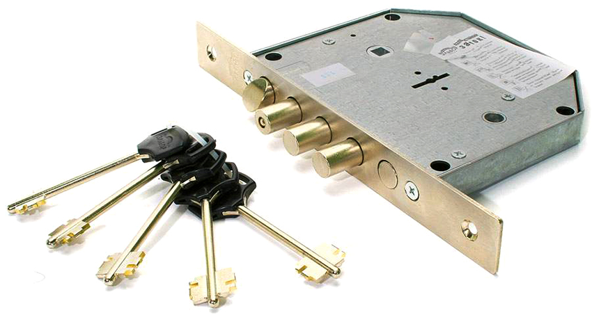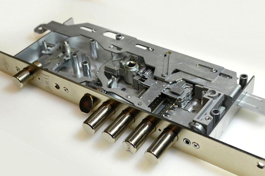 Ang prinsipyo ng pagpapatakbo ng tulad ng isang mortise lock para sa isang pintuan sa pasukan ay ang maraming mga silindro ay matatagpuan sa loob ng mekanismo. Ang mga ito ay nasa magkakaibang taas, kaya napakahirap buksan ang mekanismong ito sa isang pagpili. Sa kaso ng maling pag-aayos ng mga silindro lock naka-jam