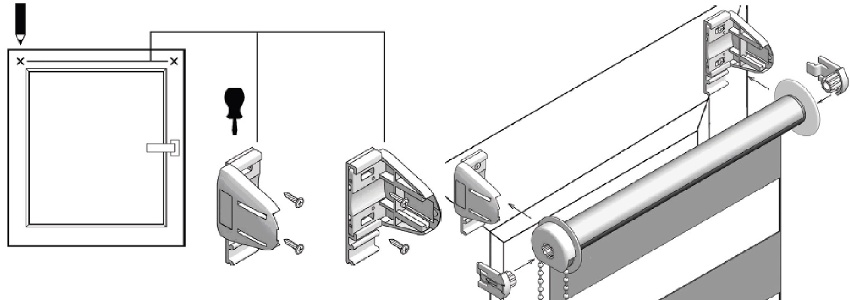 Ang pagmamarka para sa pangkabit ay dapat gawin nang may mataas na kawastuhan. Dahil ang mga blinds ay ginawa sa tamang hugis ng geometriko, ang kaunting pagbaluktot sa panahon ng pag-install nito ay maaaring makaapekto sa hitsura ng window, at negatibong nakakaapekto sa pagpapatakbo ng mga gumagalaw na mekanismo ng mga light filter. Matapos mai-install ang mga braket sa isa sa mga paraan, ang mga fastener sa produkto ay dapat na snap sa kanila. Ang parehong mga pagpipilian ay ligtas at banayad sa reinforced-plastic frame. Ito ay isang medyo maaasahang pamamaraang pag-mount.
