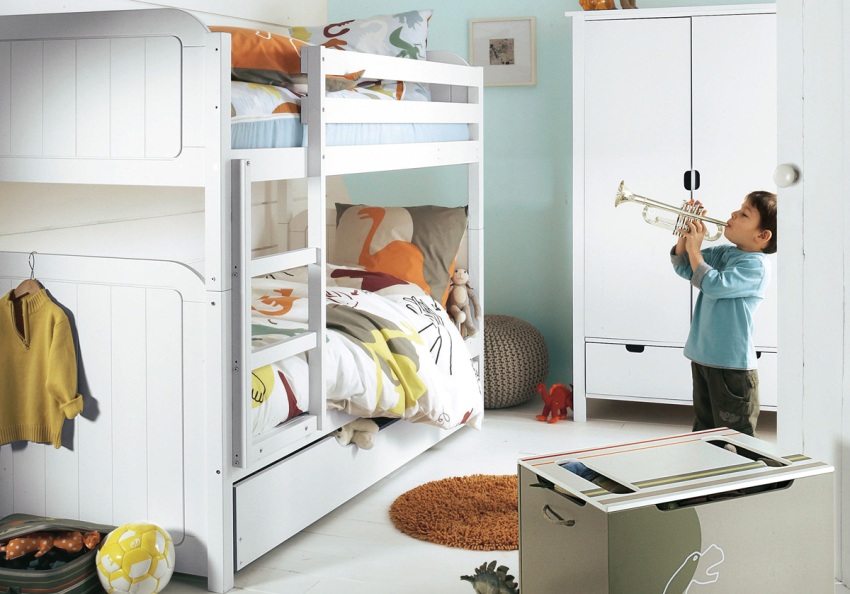 Ang isang bunk bed ay ang hindi maikakaila na perpektong pagpipilian para sa dalawang bata. Ang ideyang ito ay totoo rin para sa isang bata. Sa ground floor lamang posible na magbigay ng kasangkapan sa isang lugar ng trabaho, isang lugar para sa pagkamalikhain, isang sistema ng pag-iimbak para sa mga bagay ng mga bata. Ang loft bed ay napakapopular para sa maliliit na silid ng mga bata. Ang mga larawan ng disenyo ng isang maliit na silid ng mga bata para sa isang batang lalaki ay malinaw na nagpapakita ng mga pagpipilian para sa praktikal na paggamit ng puwang.