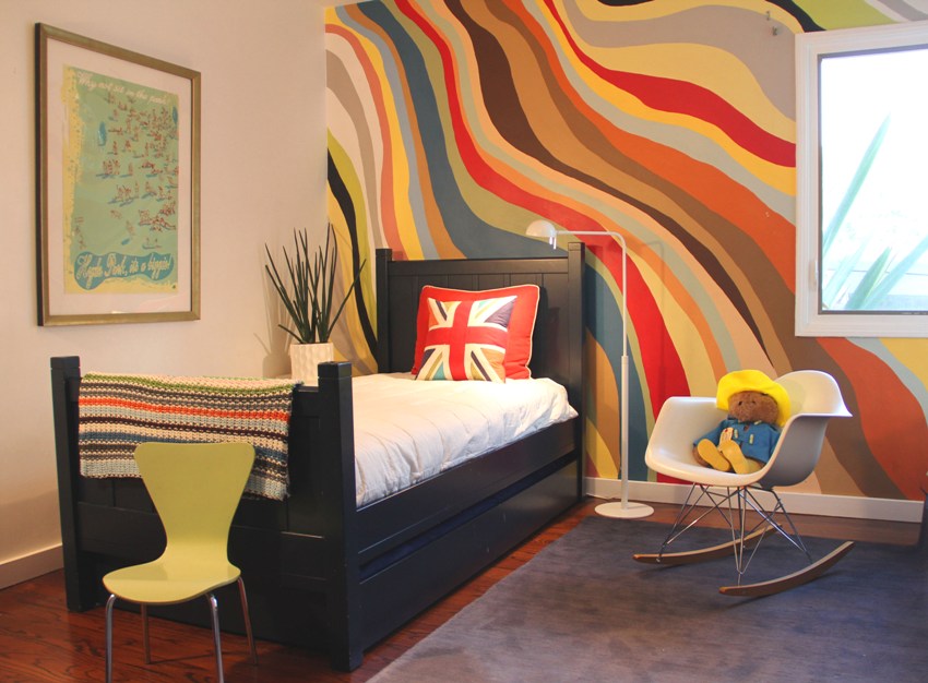Disenyo ng istilo ng India... Maraming mga bata ang nasisiyahan sa pagtakbo at pagsisigaw sa paligid ng apartment, pagpipinta ng kanilang mukha at pagbaril ng mga arrow sa mga target. Ang isang mahusay na solusyon para sa isang silid ng tulad ng isang makulay na disenyo ay ang pag-install ng isang maliit na wigwam. Gustong magretiro ng mga bata sa maliliit na bahay. Ang gayong maliit na mundo ay magpapahintulot sa bata na masiyahan sa kalungkutan, sumasalamin, huminahon at tumuon.