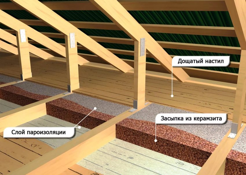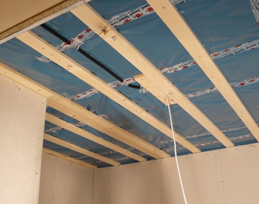Pag-install ng pagkakabukod ng init at singaw para sa isang kisame sa isang sahig na gawa sa kahoy