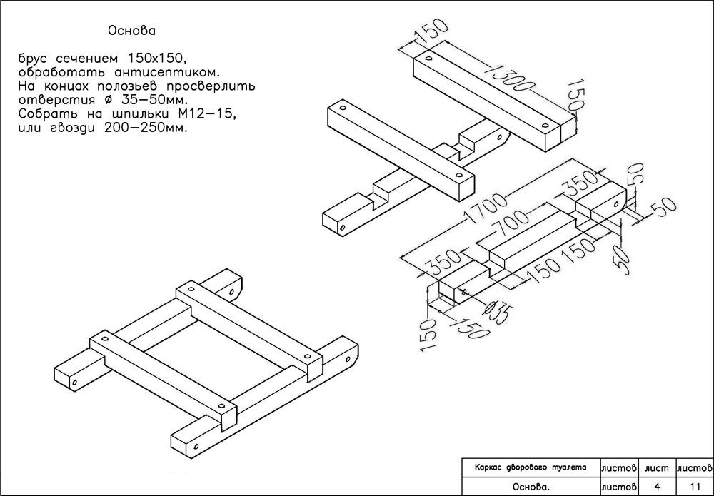 - ang frame ay gawa sa mga bar na may sukat na 100x50 mm. Naka-install ito sa dalawang parallel beams na may isang seksyon ng 150x150 mm. Ginampanan nila ang papel ng mga tumatakbo. Dahil ang mga bar ay nakikipag-ugnay sa lupa at direkta sa hukay, dapat silang tratuhin ng isang antiseptiko. Kung kinakailangan, ang banyo ay insulated ng foam. Ibinubo ang bubong takpan ng anumang materyal. Maaari itong maging malambot na mga tile na naiwan mula sa pagtatayo;