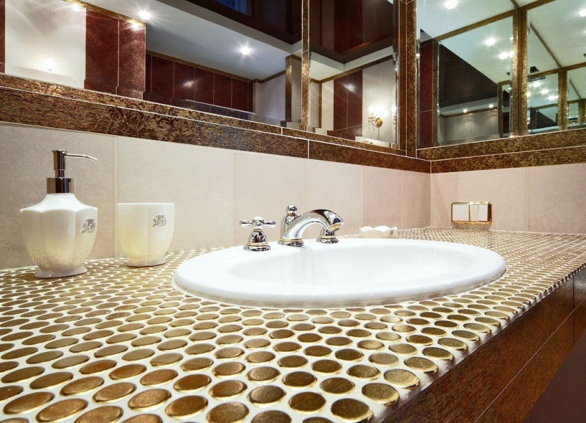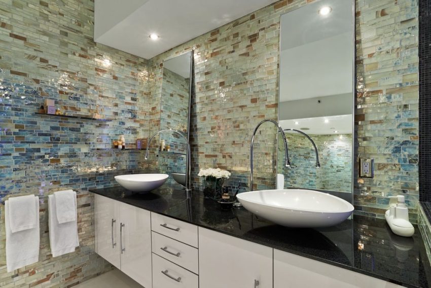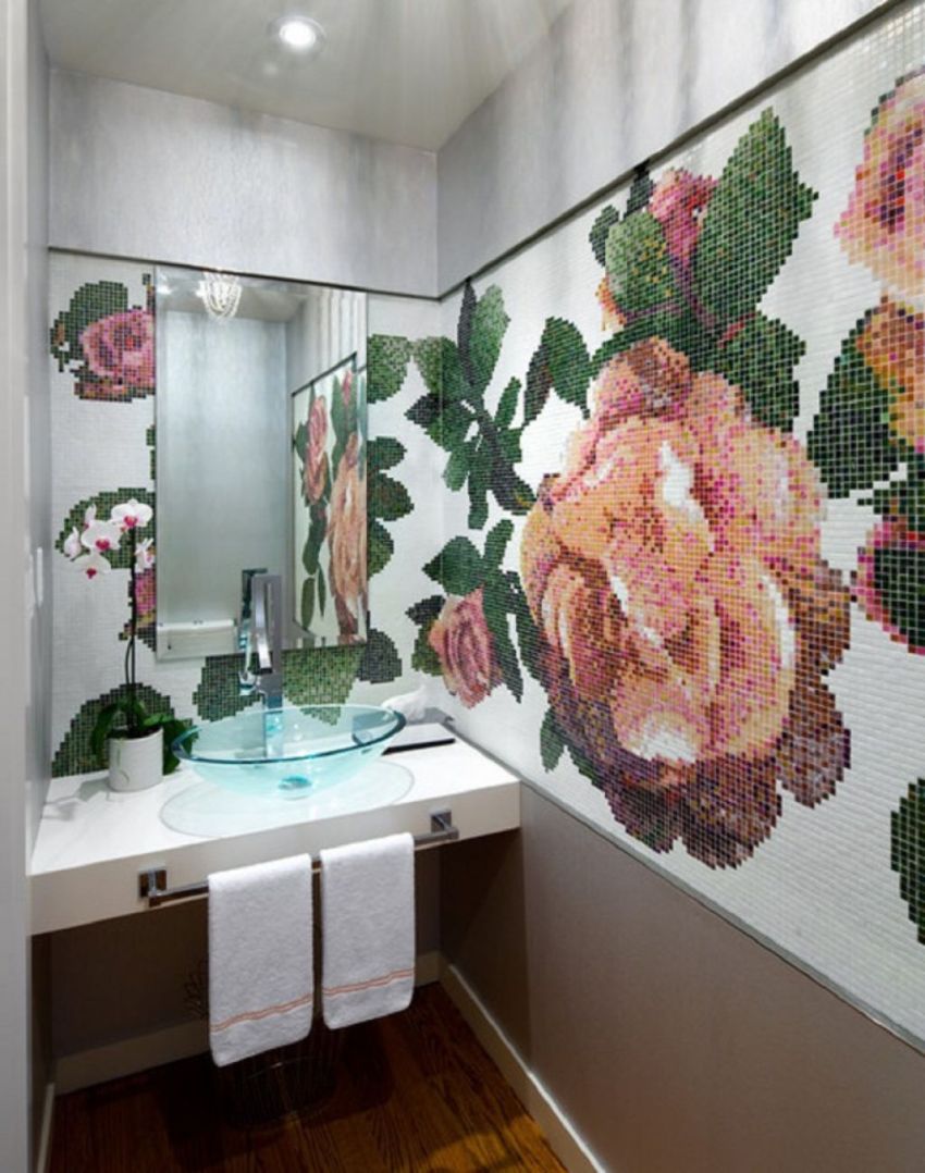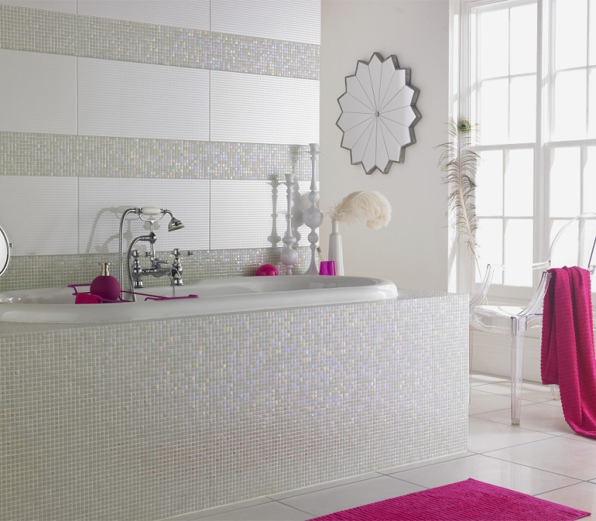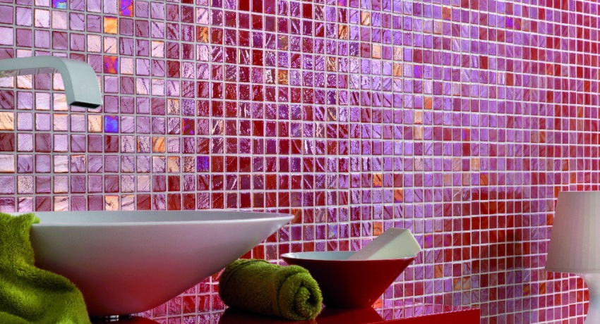 Banyoda cam mozaik karolar: fotoğraflar ve özellikler