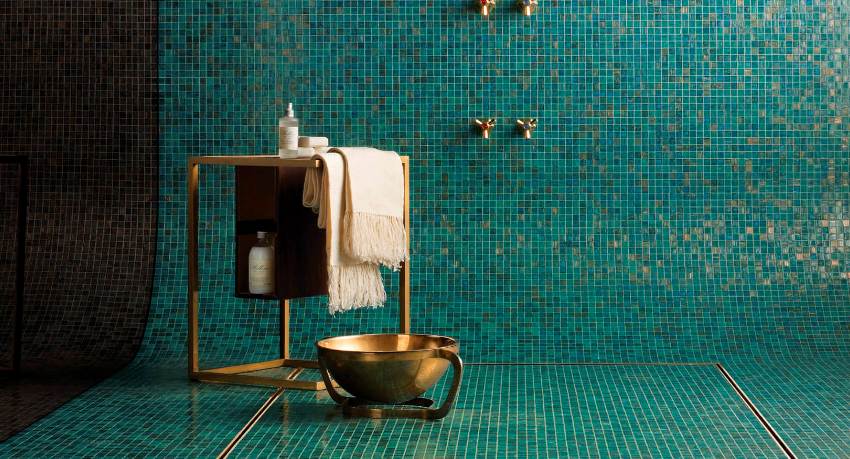 Banyo için küçük mozaik karolar: fotoğraflar ve faydalar