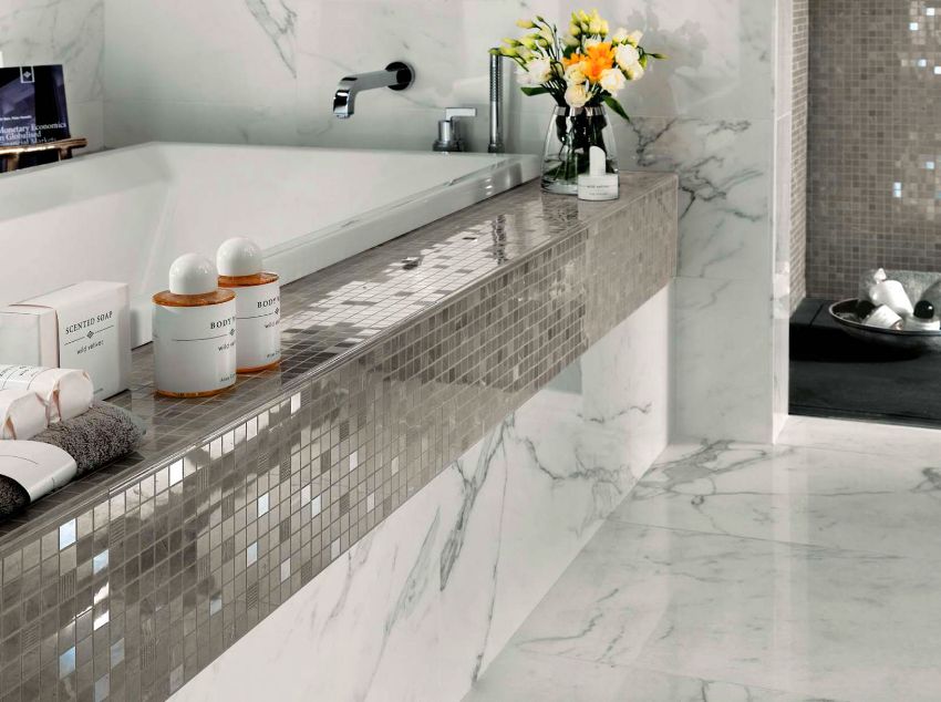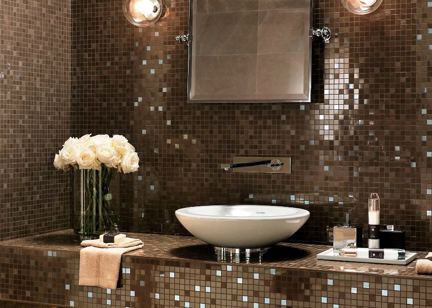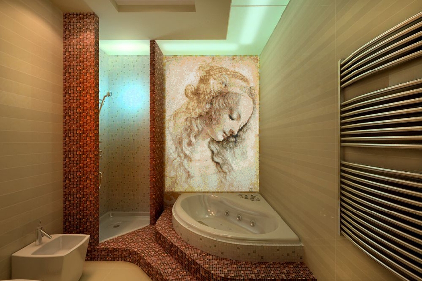 Mozaik banyoda fayans: tasarım, fotoğraf