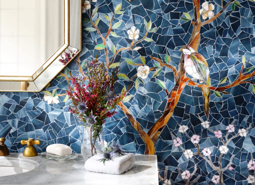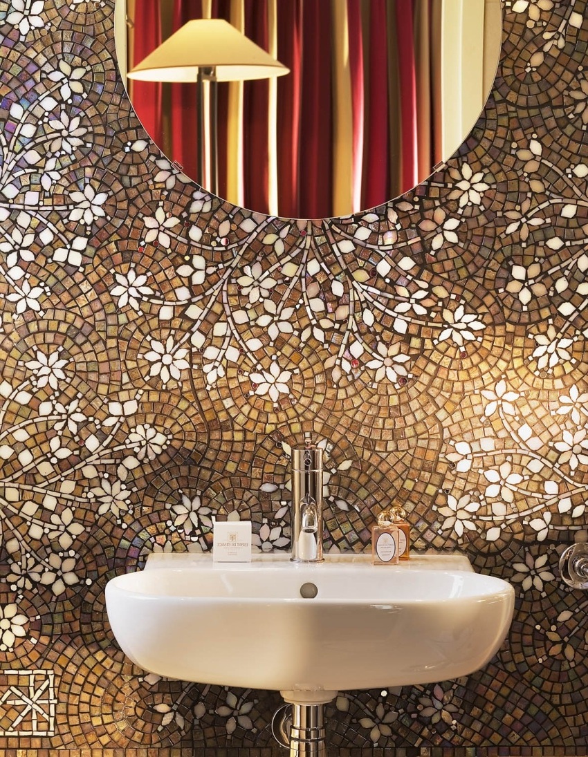 İç mekanda cam mozaik kullanımı artık çok önemli, böyle bir kaplama mekana olağanüstü ve gizemli bir karakter verebilir