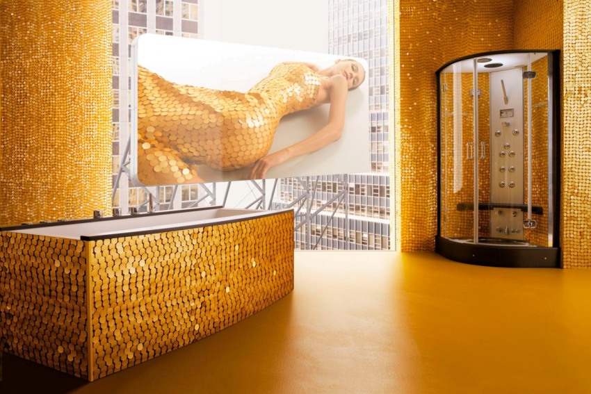 Gerekirse gümüş veya altın kaplamalı bir ayna mozaiği satın alabilirsiniz. Bu tür bir banyo için özel bir mağazadan bir mozaik satın alabilir veya çevrimiçi sipariş verebilirsiniz. Bu tür malzemelerin maliyeti oldukça yüksektir.