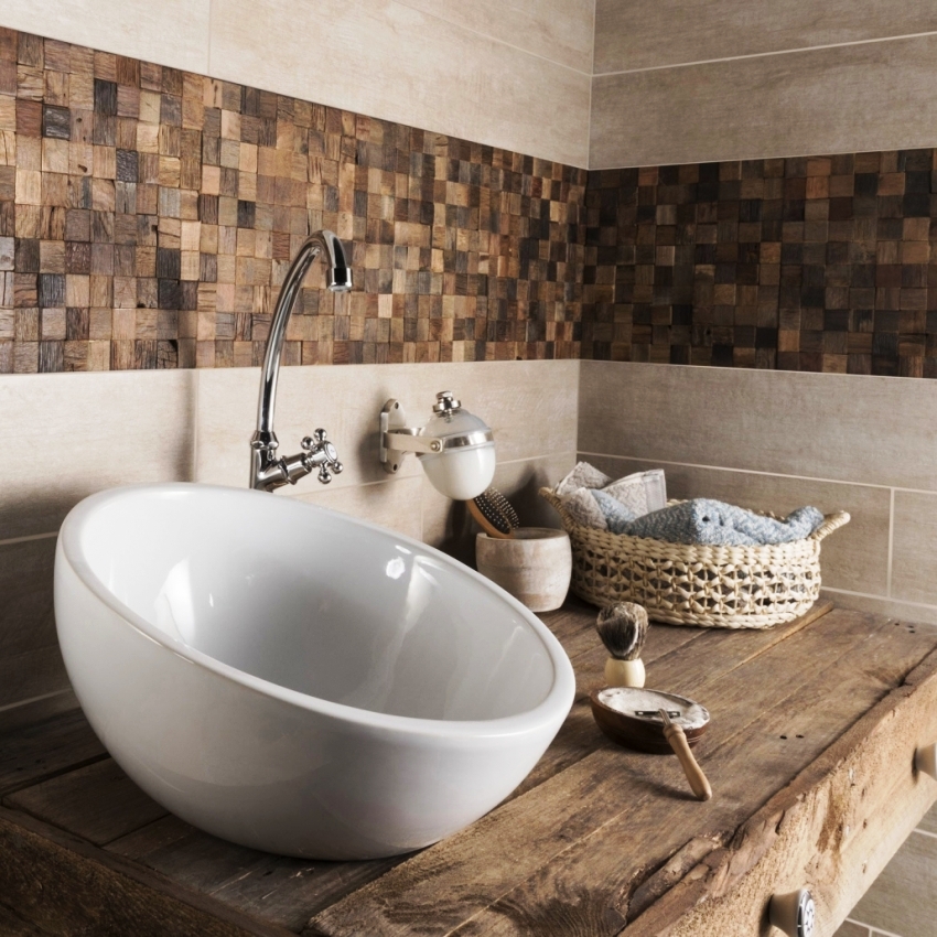 En az yaygın olanı ahşaptan yapılmış mozaik karolardır. Son zamanlarda piyasada göründü. Üretiminde nadir, pahalı ağaç türleri kullanılmaktadır. Bu tür kaplamaların kullanılması, banyo duvarlarını farklı tonlarda küçük fayanslarla kaplamanıza izin verir. Elbette bu çözüm en orijinal olanıdır.