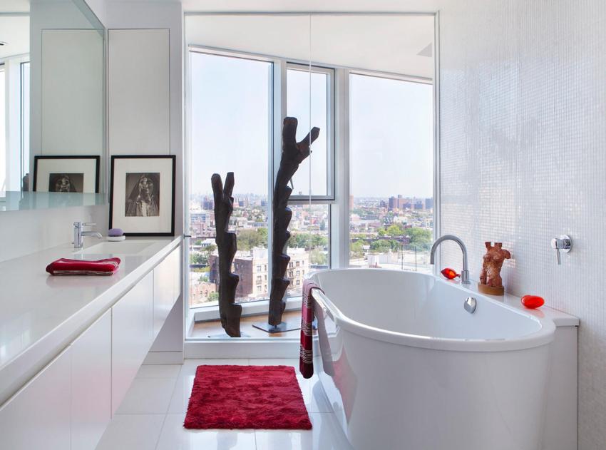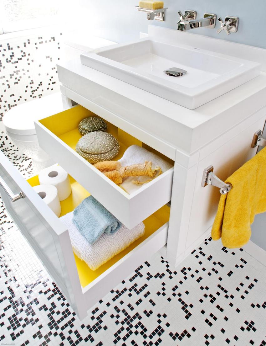 Kazan-kazan çözümü beyaz bir mozaiktir. Böyle bir oda her zaman şık görünecek. Bu nedenle, renk çeşitliliğine karar veremiyorsanız, beyaz fayansları tercih edin. Bir başka önemli avantajı daha var: su çizgileri üzerinde o kadar görünmüyor.