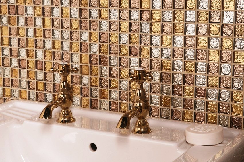 Metal kaplamanın yüzeyi de çeşitli tiplere ayrılmıştır. Parlak veya mat olabilir ve ayrıca belirli bir dokuya sahip olabilir. Bu türden bir banyodaki mozaik fotoğrafları doğru seçimi yapmanıza yardımcı olacaktır, bu yüzden onları tanımanız önerilir.