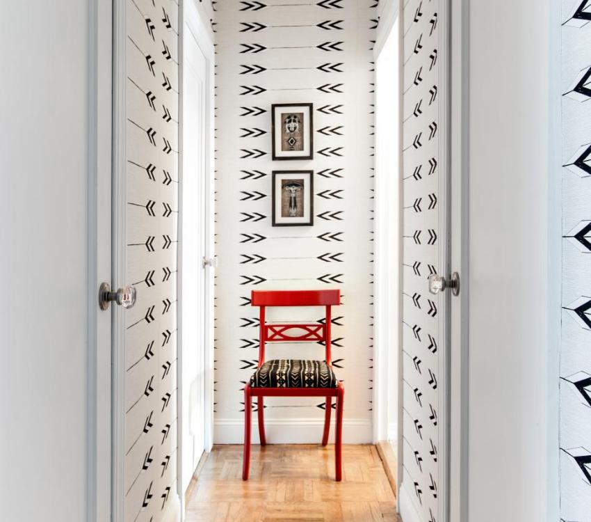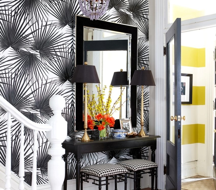 Orijinal siyah beyaz duvar kağıdı koridorun dekorasyonunda