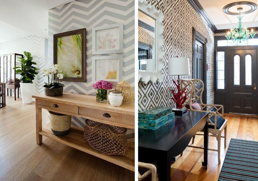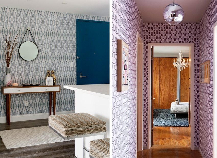 Koridor tasarımında duvar kağıdının rengi ve deseni (ilginç fikirlerin fotoğrafı)