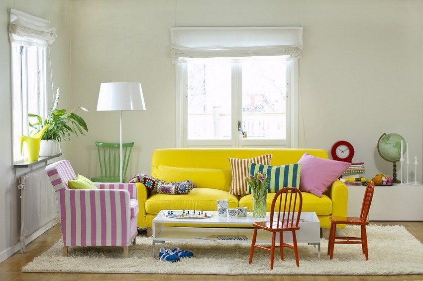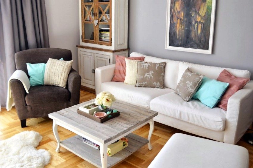 Màu tường chính xác và kiểu trang trí phù hợp sẽ giúp mở rộng trực quan các bức tường trong phòng khách nhỏ