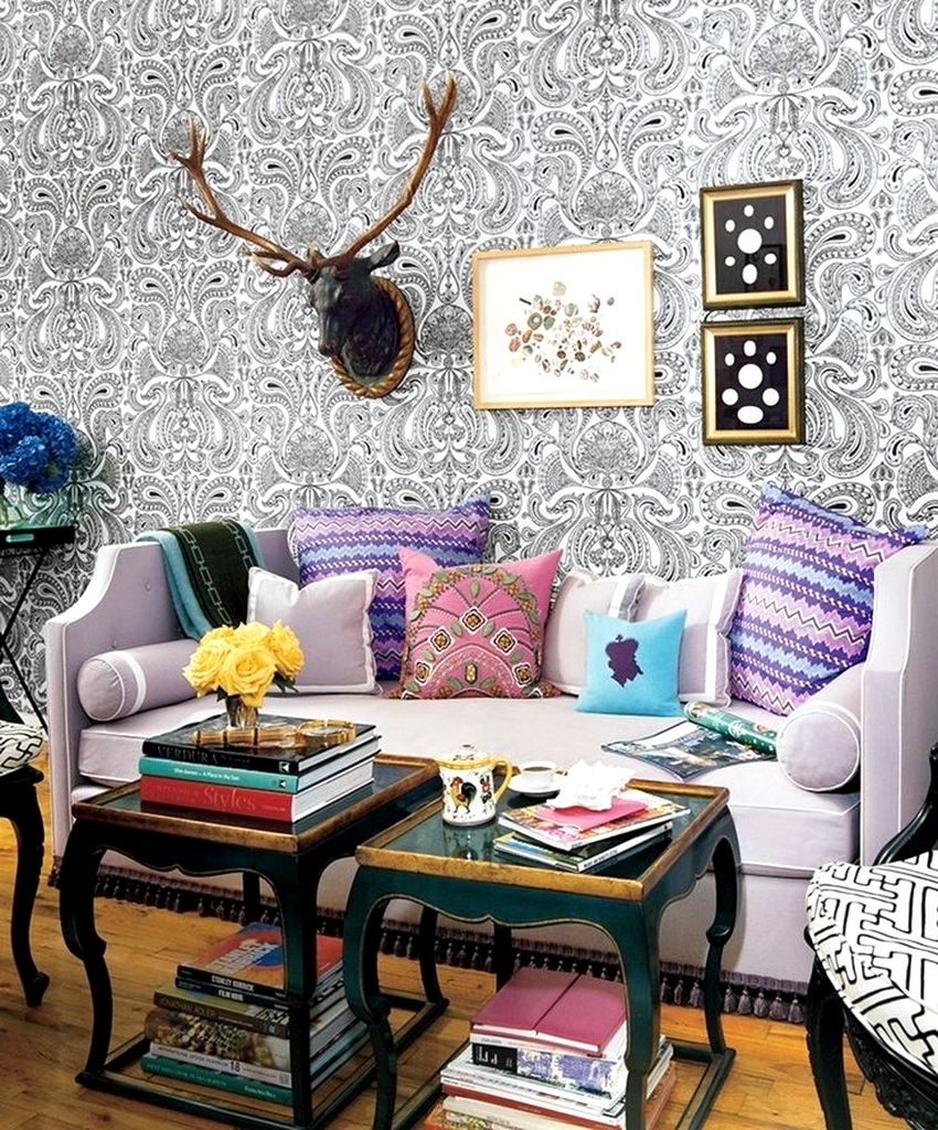 - giấy dán tường là một lựa chọn tiết kiệm và không quá phức tạp để trang trí trần nhà trong phòng khách. Sự lựa chọn của giấy dán tường rất phong phú, và bạn có thể dễ dàng tìm thấy giải pháp phù hợp nhất cho mình về kết cấu và màu sắc;