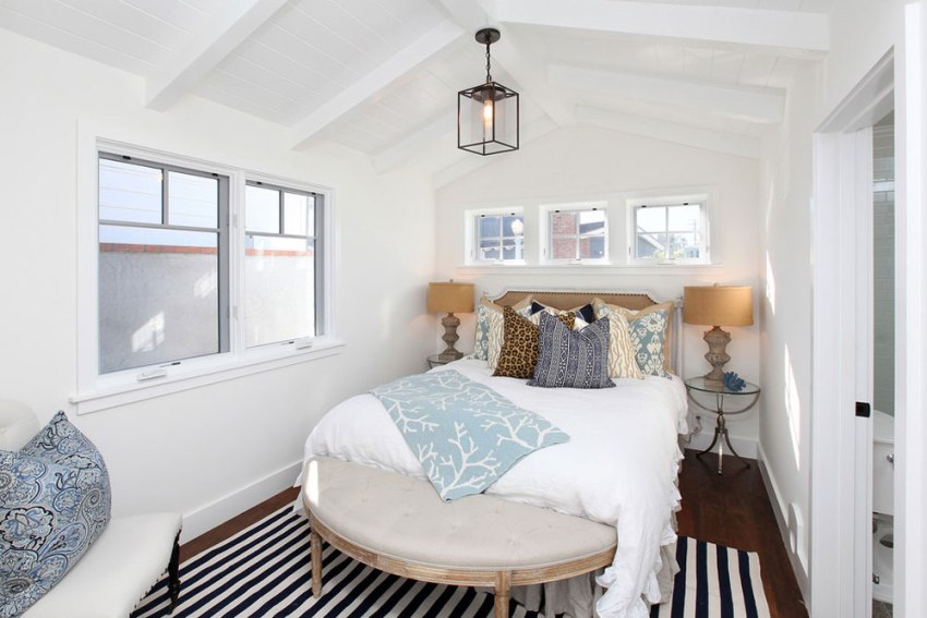 Bạn cần bắt đầu phát triển thiết kế của một phòng ngủ nhỏ với diện tích 12 mét vuông bằng cách đánh giá chiều cao của trần nhà và kích thước của cửa sổ. Nếu trần nhà cao và có đủ ánh sáng tự nhiên, không nhất thiết phải chỉ sử dụng các tông màu nhẹ và phấn. Sự vô trùng màu trắng có vẻ khó chịu và lạnh đối với nhiều người. Có thể sử dụng các màu đậm hơn, nhưng cần cẩn thận khi sử dụng các thiết kế và bản in lớn.