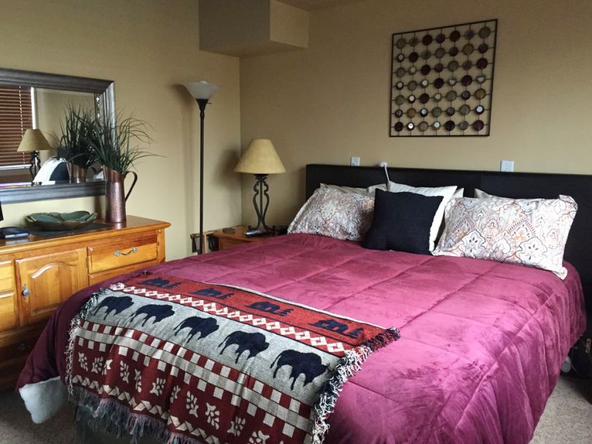 Lời khuyên hữu ích! Vứt bỏ giường đôi theo sau để nó được tiếp cận từ ba phía. Nếu không, việc thay bộ khăn trải giường sẽ bị lu mờ bởi sự bất tiện liên tục.