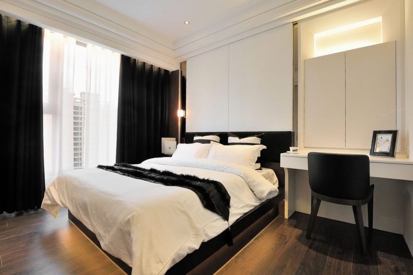 Phòng ngủ hiện đại với bàn nhỏ để chăm sóc sắc đẹp