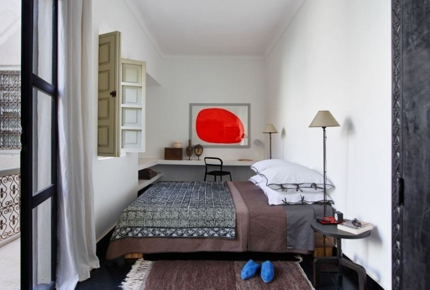 Giải pháp hợp lý duy nhất cho một căn phòng dài hẹp là kê giường từ tường này sang tường khác
