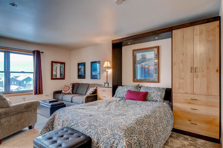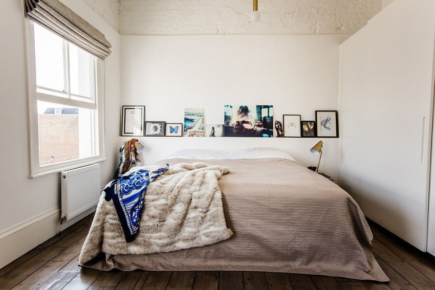 Trong phòng ngủ nhỏ, nên đặt nội thất tủ cao từ sàn đến trần.