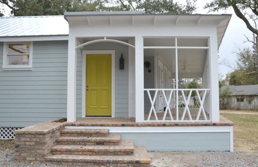 - Hàng hiên dẫn vào nhà nên rộng rãi để thông thoáng Cửa vào đã không vượt ra ngoài nó. Cư dân ra khỏi nhà không nên đi bộ trực tiếp lên bậc thang, vì điều này thường dẫn đến thương tích, đặc biệt là trong mùa đông.
