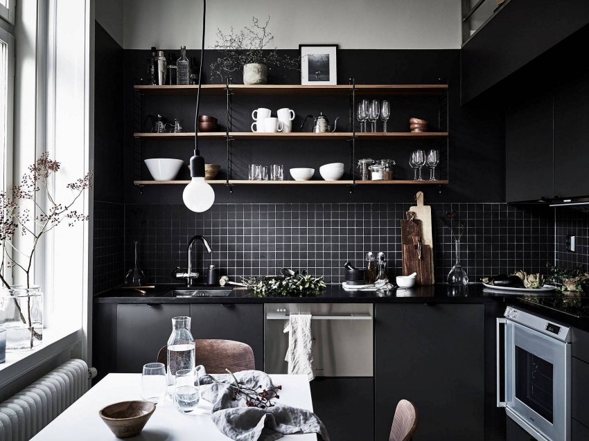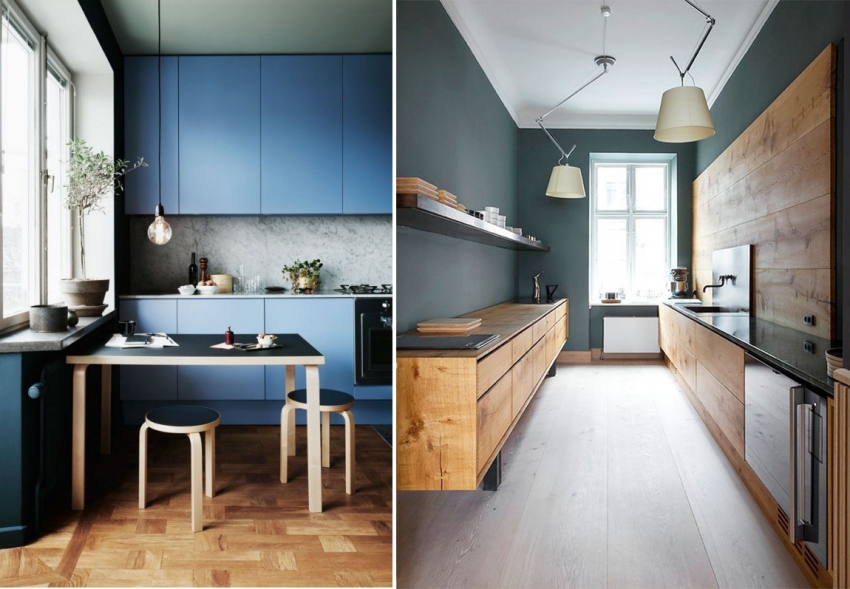 - sàn tối trong một căn bếp nhỏ là một ý tưởng tồi, vì nó thu hẹp diện tích căn phòng và thu hẹp các bức tường;