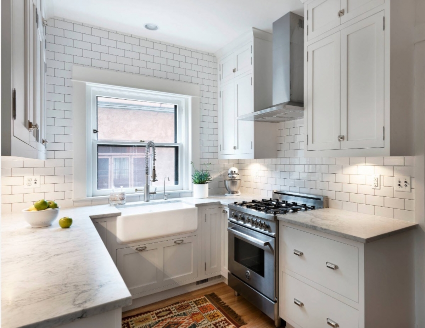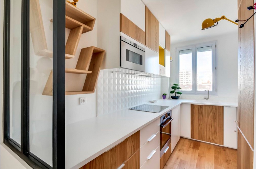 Bóng tạp dề mở rộng một cách trực quan không gian của một căn bếp nhỏ
