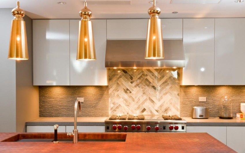 - Nếu bạn vẫn muốn sử dụng đèn chùm mặt dây chuyền trong nội thất, tốt nhất nên đặt chúng phía trên khu vực ăn uống, treo ngay phía trên bàn.