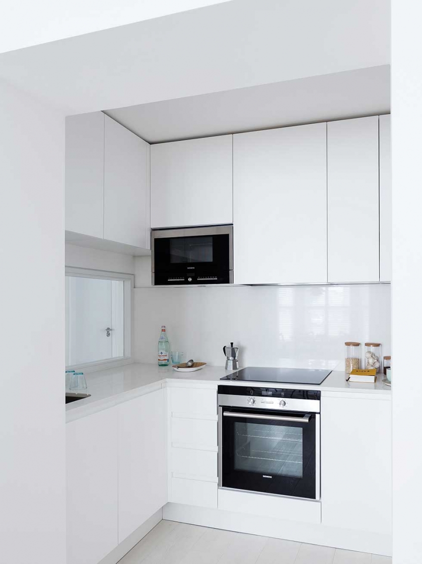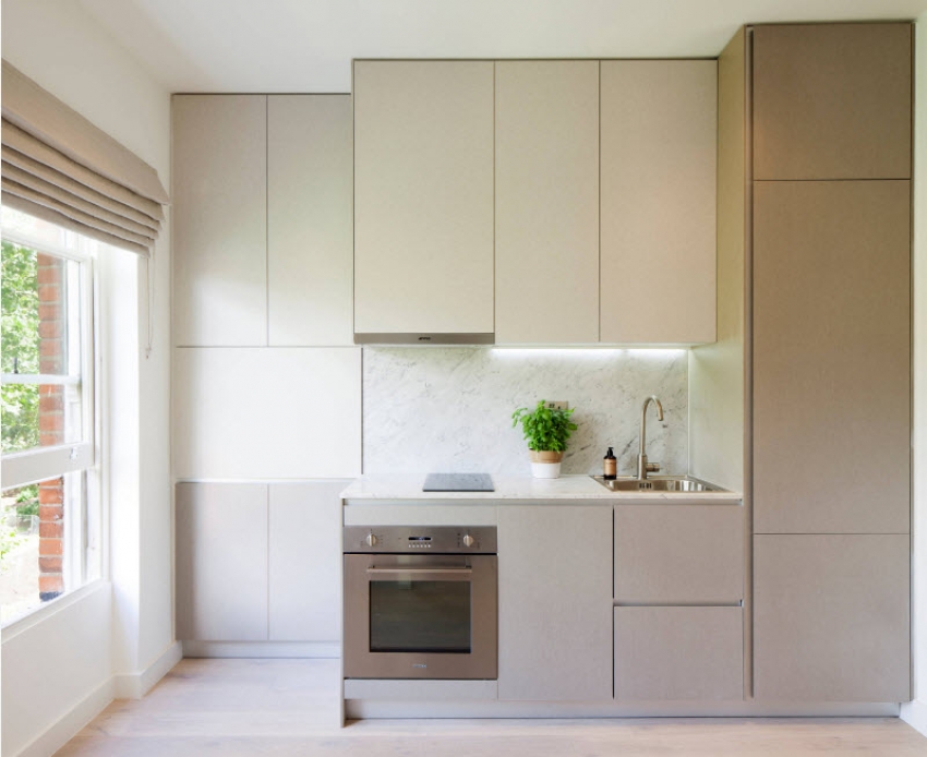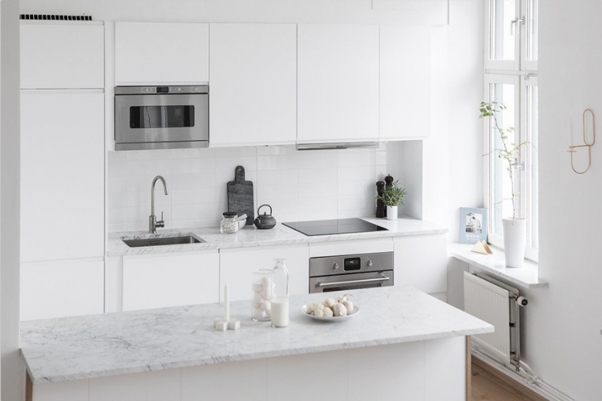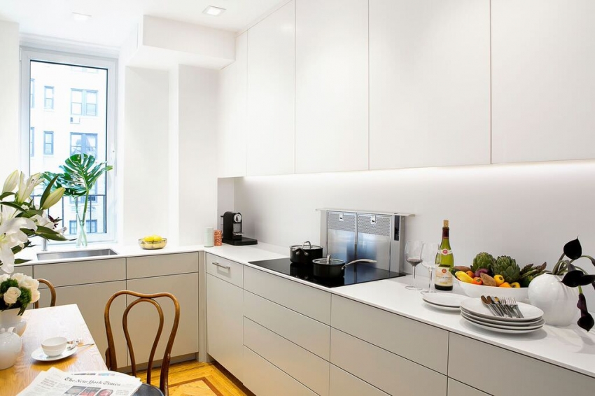 - màu sáng của thiết kế nhà bếp sẽ mở rộng không gian một cách trực quan;