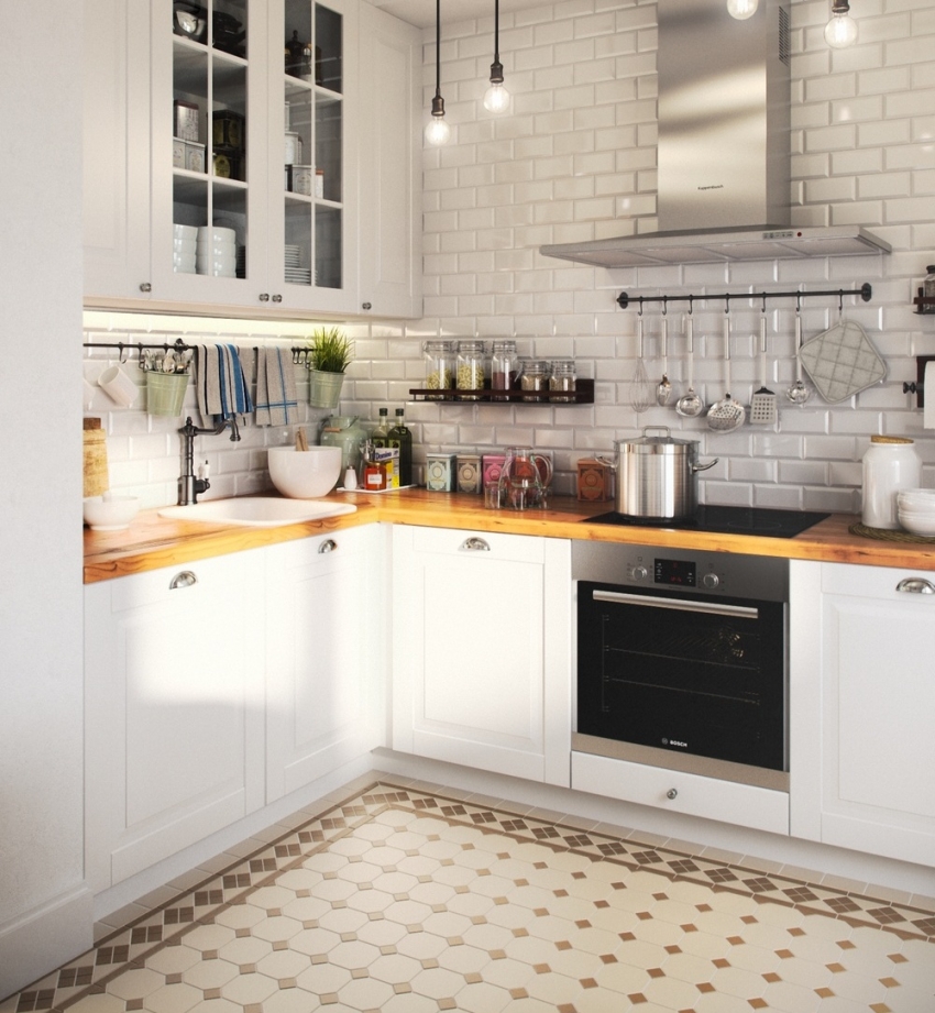 Vật liệu phổ biến nhất được sử dụng cho mục đích này là gạch gốm, và như nhiều bức ảnh đã chứng minh, nội thất của một căn bếp ở Khrushchev có thể trông rất ấn tượng với sự trợ giúp của nó.