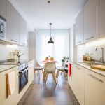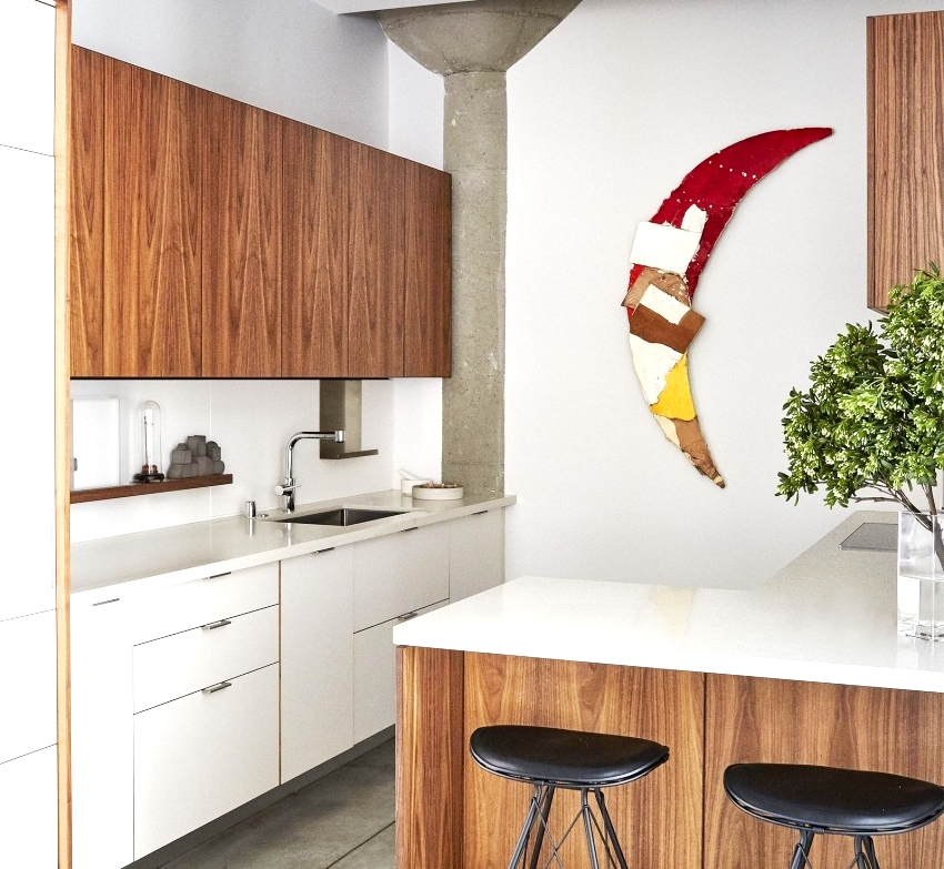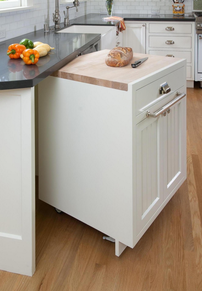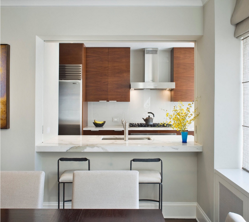 Các nhà thiết kế hiện đại sử dụng lối mở giữa bếp và hành lang để di chuyển một số đồ đạc bên ngoài khu vực bếp nhằm tăng diện tích sử dụng